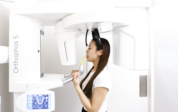 えみは総合歯科では安全性と正確性が求められる歯科治療の診断にドイツ・シロナ社製の新しい歯科用CT・ORTHOPHOS SL 3Dを完備しています。このCTは、今までCTが診断できた骨の状態、欠損の状態、顎関節、歯根の膿、親知らず、上あごの炎症、神経の走行に加えて業界初の気道の計測を行うことで高密度な画像構築と高度な診断を可能にしています。