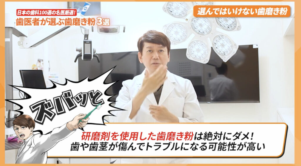 「研磨剤がたくさん入って白さをうたっている商品はやめておいた方がいい」という先生のメッセージは非常に明快です。