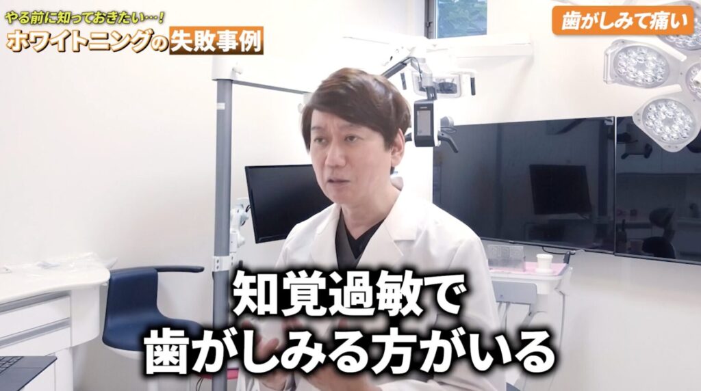 ホワイトニングにはかなり強力な薬剤を使いますが、エナメル質が薄い日本人は、その刺激で「知覚過敏」(歯がしみる症状)が起きやすいんです。