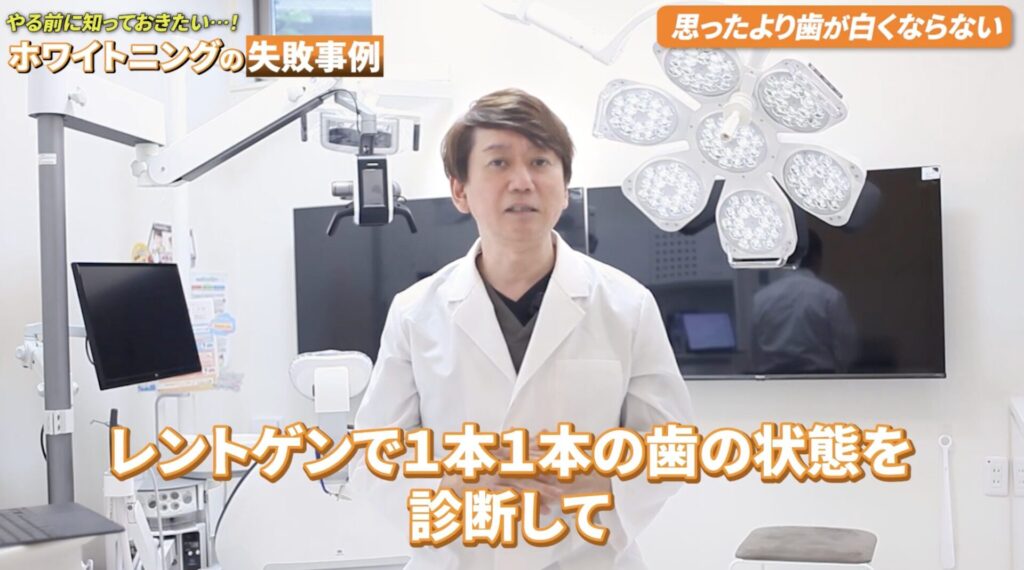 事前の診断なしに始めると、天然の歯だけが白くなり、詰め物の色が浮いて「まばらで汚い状態」になってしまうんです。