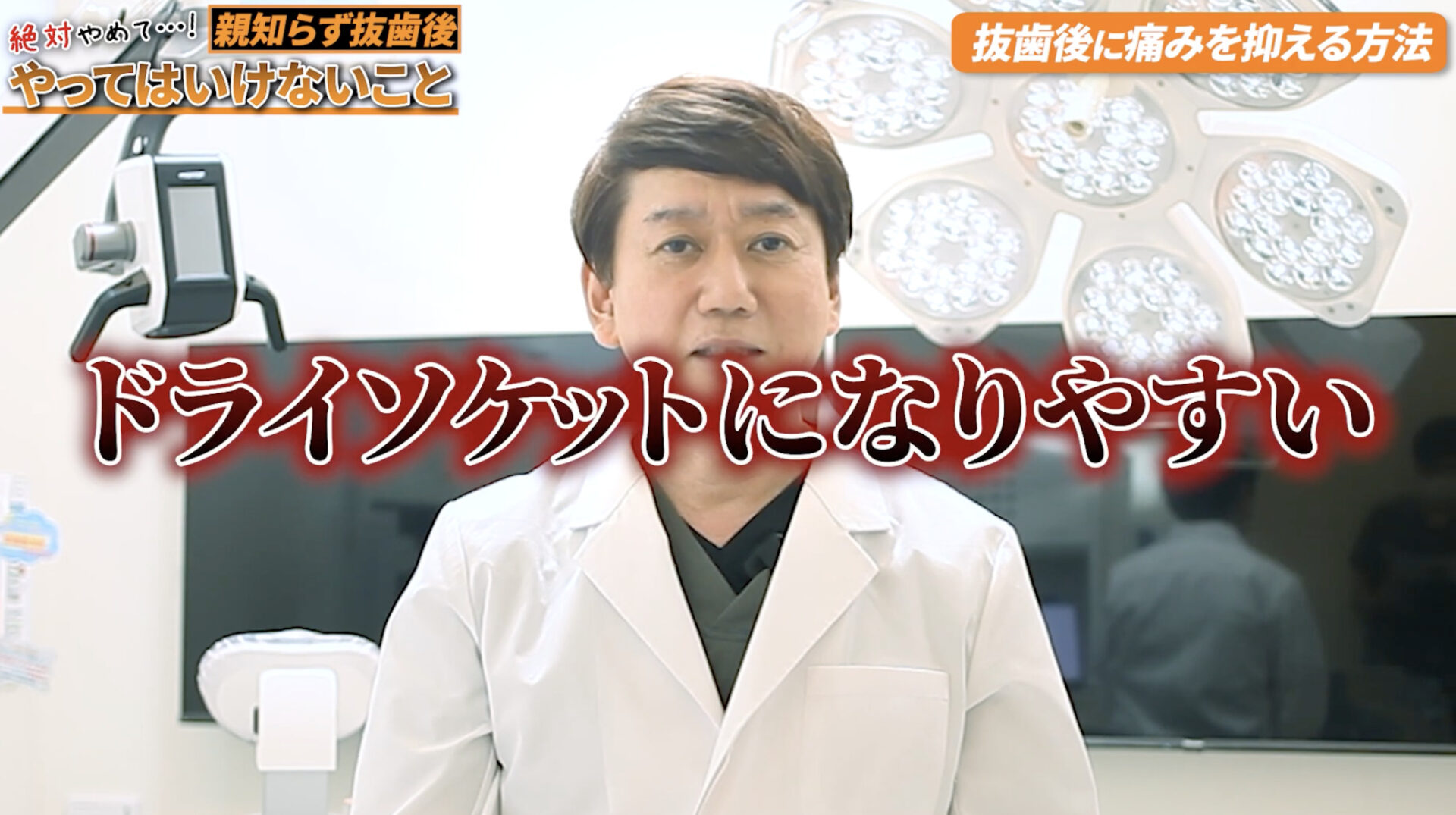 「激しい運動をしてしまう、そして傷口を触ってしまう、これをやるとドライソケットになりやすい。これは絶対やってはダメ」